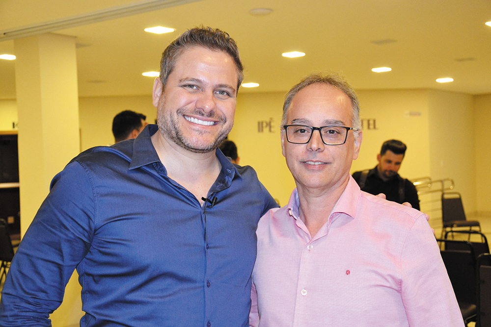 Marcelo Lopes (Escritório Lopes | Adamantina) com o empresário Marco Filho (Oeste Seguros) no coquetel de 30 anos da empresa