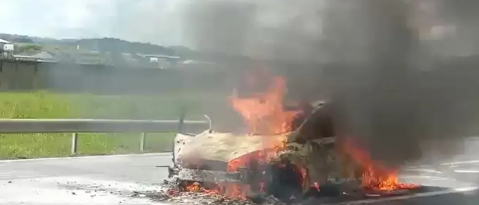 Imagens registradas por motoristas que passavam pelo local mostram que o veículo foi totalmente tomado pelas chamas. A fumaça densa também chamou a atenção.