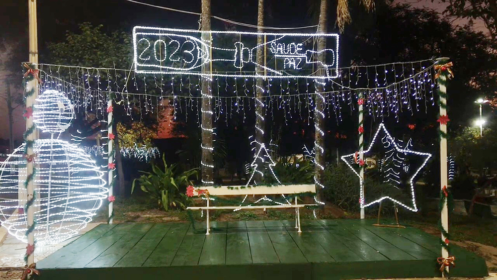 Através de um trabalho de iniciativa do Fundo Social e que contou com a participação de diversos setores da Prefeitura nas últimas semanas, o trabalho foi intenso visando enfeitar a praça central da Cidade Amizade.