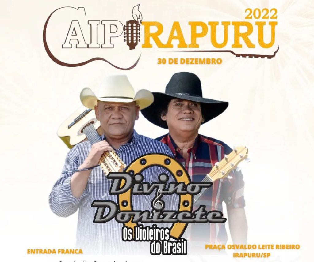 O Caipirapuru 2022 trará shows da música sertaneja raiz e grandes artistas passarão pelos três dias de festa, nomes como Juliana Andrade e Claiton Torres, Peão Dourado e Platini, e muito mais.