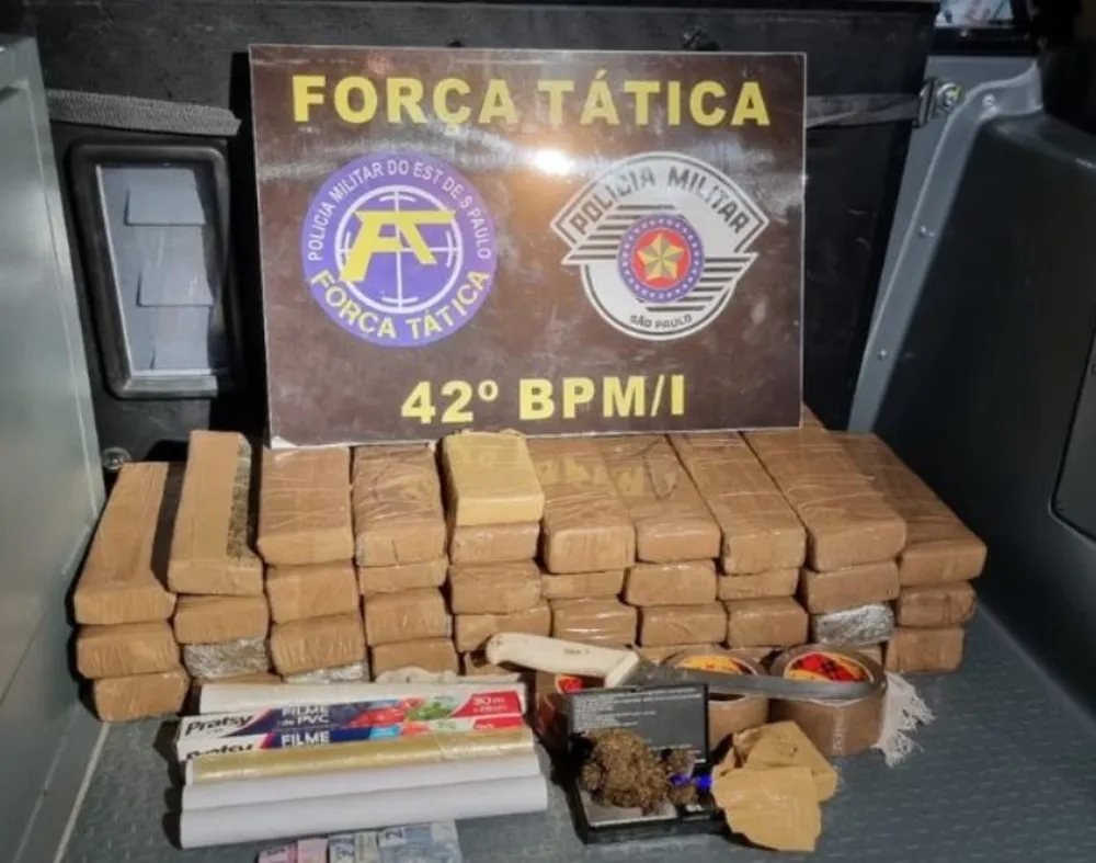 Após vistoria no imóvel, foram localizados 38 tabletes e dois já fracionados de maconha, totalizando 32,7 quilos da droga.