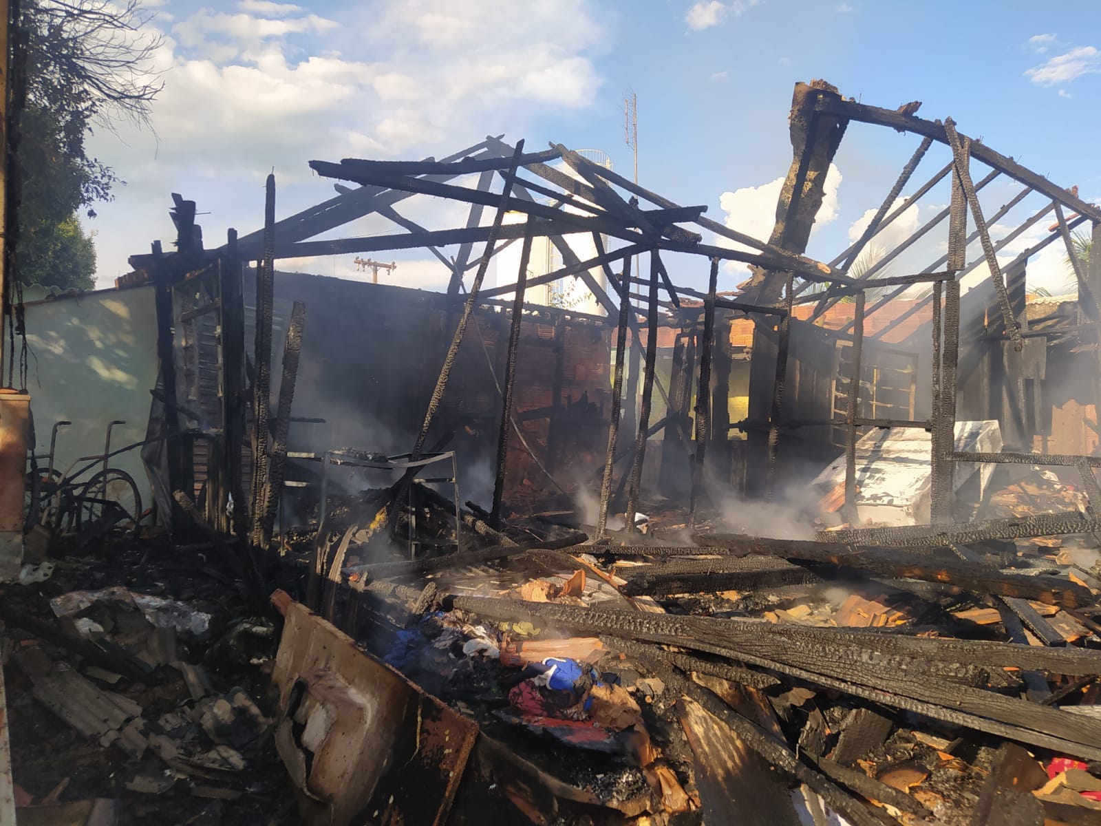 Uma residência da Vila Barros em Dracena foi destruída em decorrência de um incêndio na tarde desta quarta-feira (8).