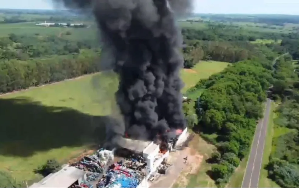 Um incêndio de grandes proporções atingiu uma fábrica de tintas na manhã desta quarta-feira (8), em Neves Paulista (SP).