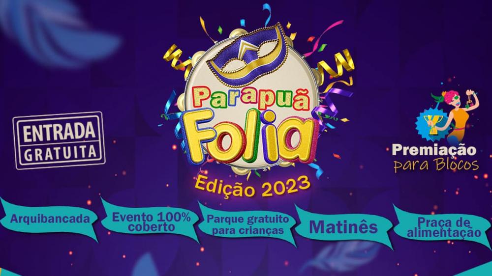 Começa hoje, sexta-feira, dia 17, e segue até a próxima terça-feira (21) o Parapuã Folia 2023. O evento se consagra como o maior da microrregião este ano, e contará com estrutura 100% coberta protegendo os foliões de possíveis chuvas, além de área vip em prol ao hospital do município, praça de alimentação, arquibancada e parque de diversões totalmente gratuito.