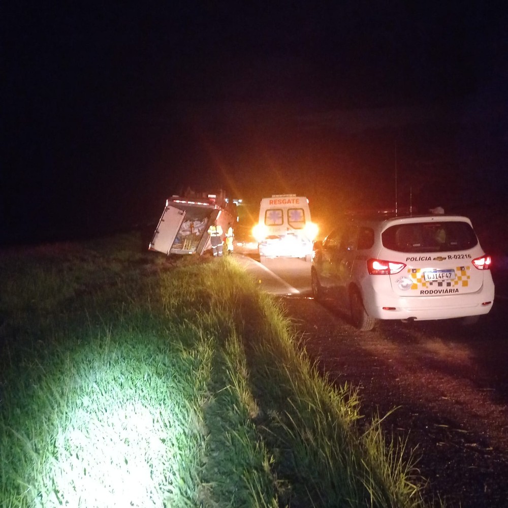 Um caminhão de hortifrutigranjeiro tombou na Rodovia Raposo Tavares (SP-270), na noite desta quarta-feira (22), após o motorista perder o controle da direção, em Regente Feijó (SP). A carga ficou sobre a pista e parte da via está interditada.