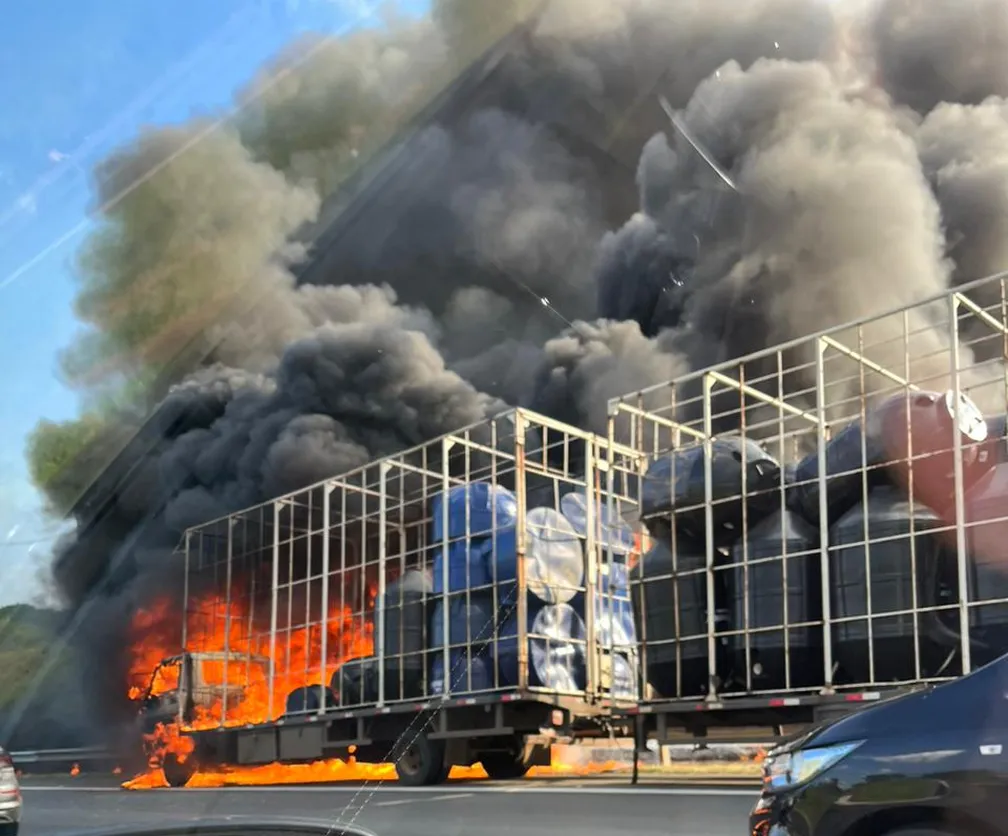 Um incêndio em um caminhão provocou lentidão em trecho da Rodovia D. Pedro I (SP-065), em Campinas (SP), na tarde desta sexta-feira (24). As chamas geraram um rastro de fogo no canteiro central da via. Não há informações de feridos.