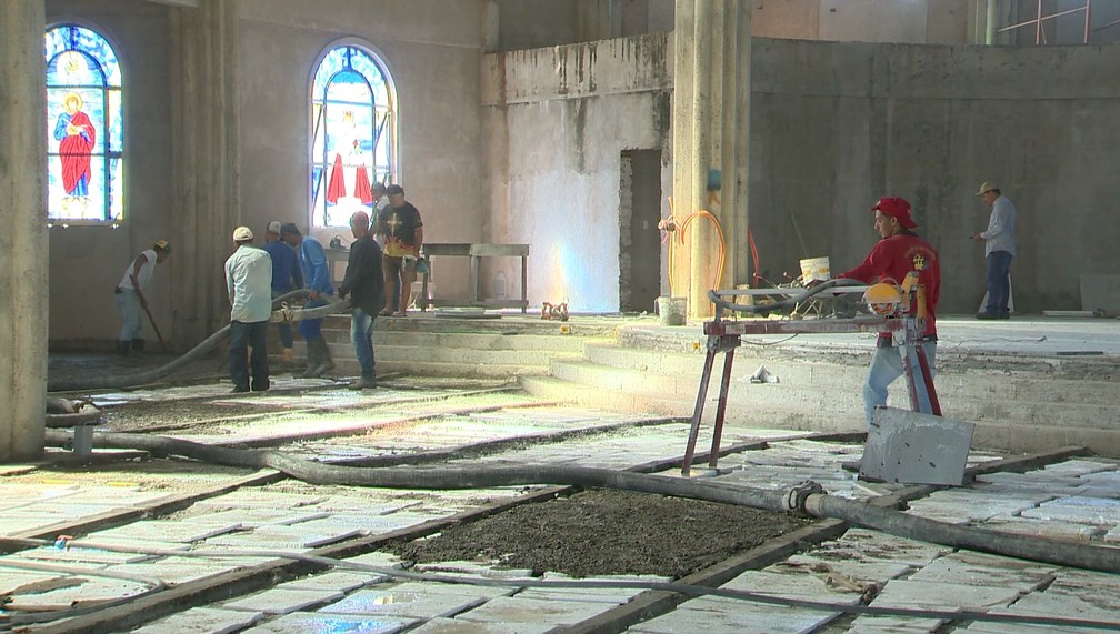 De acordo com a paróquia, já foram investidos mais de R$ 15 milhões na construção. Atualmente, a obra avança e funcionários trabalham para concluir o piso do santuário.
