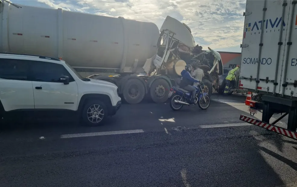 Segundo a Polícia Militar Rodoviária, a colisão, do tipo engavetamento, aconteceu por volta das 7h40, no quilômetro 343 da rodovia, na altura do bairro Jardim Araruna.