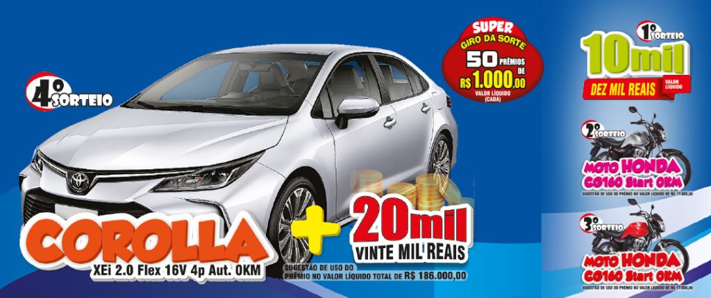 4º) PRÊMIO – COROLLA 0 KM + R$ 20 MIL