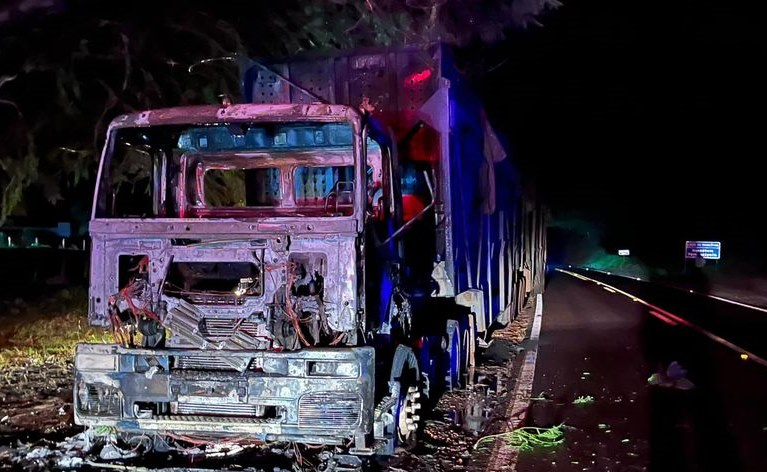 O Corpo de Bombeiros foi acionado. No entanto, apesar dos esforços das equipes de emergência, as chamas se propagaram com intensidade e consumiram completamente a cabine do caminhão, resultando em perda total.