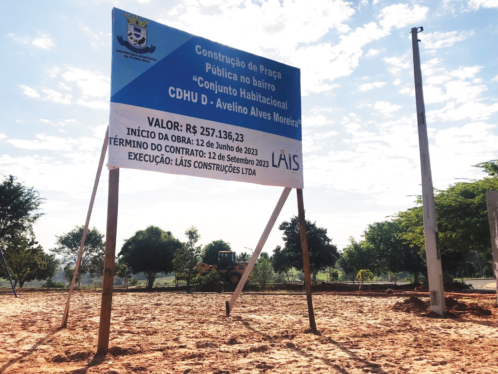 A Prefeitura Municipal de Flora Rica contratou através de licitação a empresa Laís de Adamantina que iniciou a obra neste mês de junho e o prazo de entrega está programado para o mês de setembro.