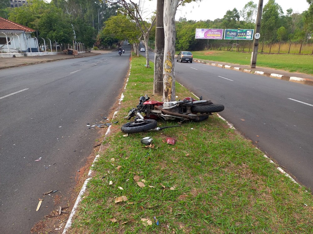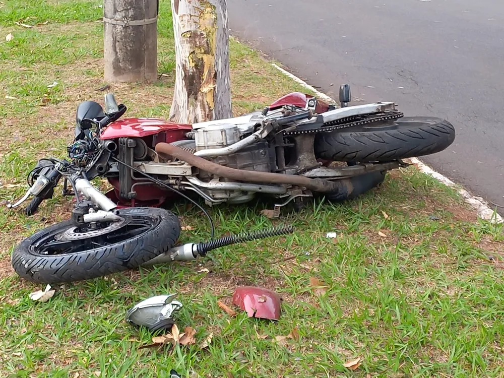 Um motociclista perdeu o controle da direção e colidiu contra uma árvore, na manhã desta terça-feira (18), no Jardim das Rosas, em Presidente Prudente.