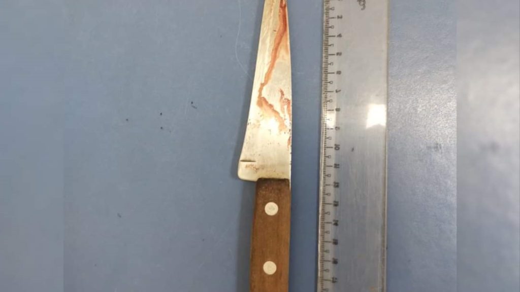 A faca utilizada foi apreendida e o autor permaneceu preso em flagrante por tentativa de homicídio.