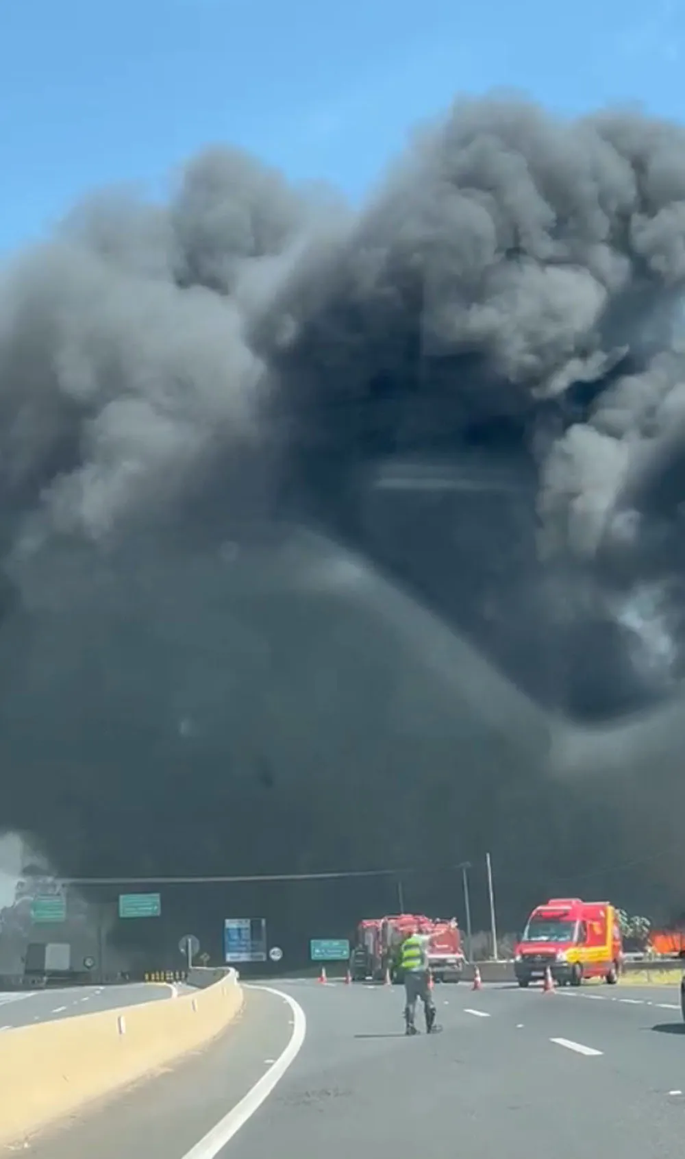 A fumaça preta causada pelo incêndio encobriu trechos das duas rodovias.