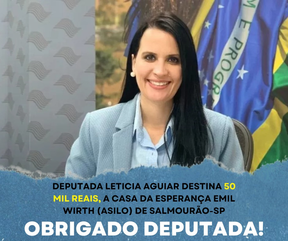 O vereador João Leme através das redes sociais, informou que na última semana através de um trabalho da deputada estadual Leticia Aguiar, foi destinada uma verba para a Casa da Esperança Emil Wirth (Asilo) de Salmourão.