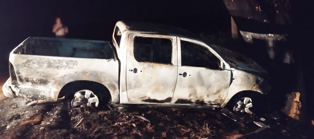 Ele explicou ainda que seguia pela vicinal, quando outra caminhonete invadiu a pista na contramão de direção, e para não bater, saiu pela faixa da direita e acabou colidindo contra a árvore.