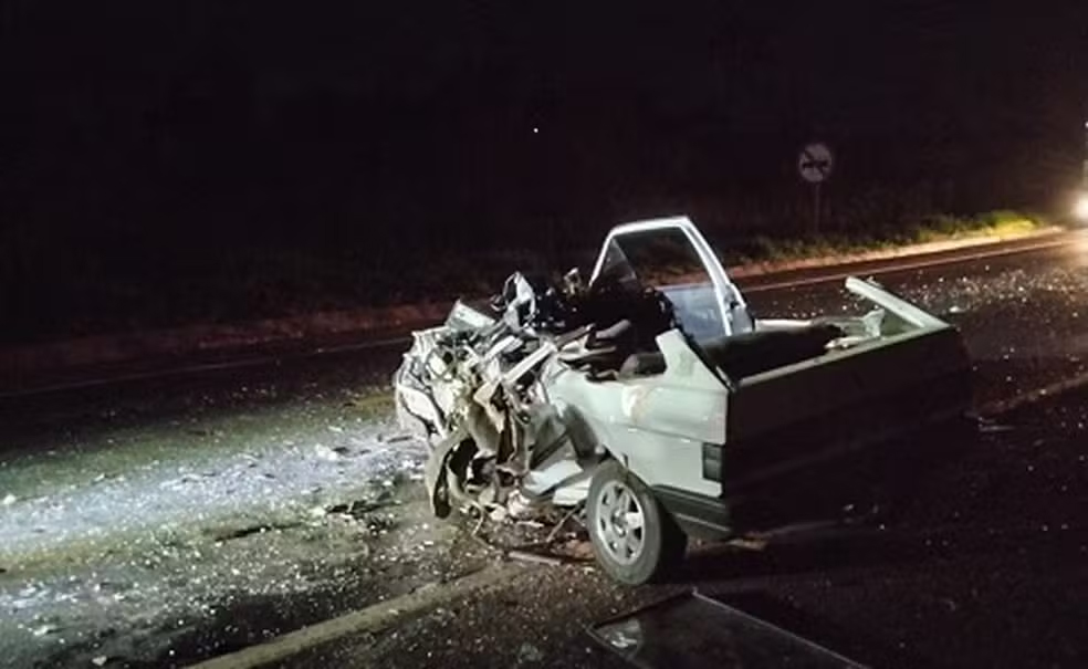 Segundo informações da Polícia Rodoviária, carro e caminhão bateram de frente. O trecho é de pista simples e o motorista do caminhão, que não se feriu, disse aos policiais que o carro invadiu a pista contrária e bateu de frente com ele.