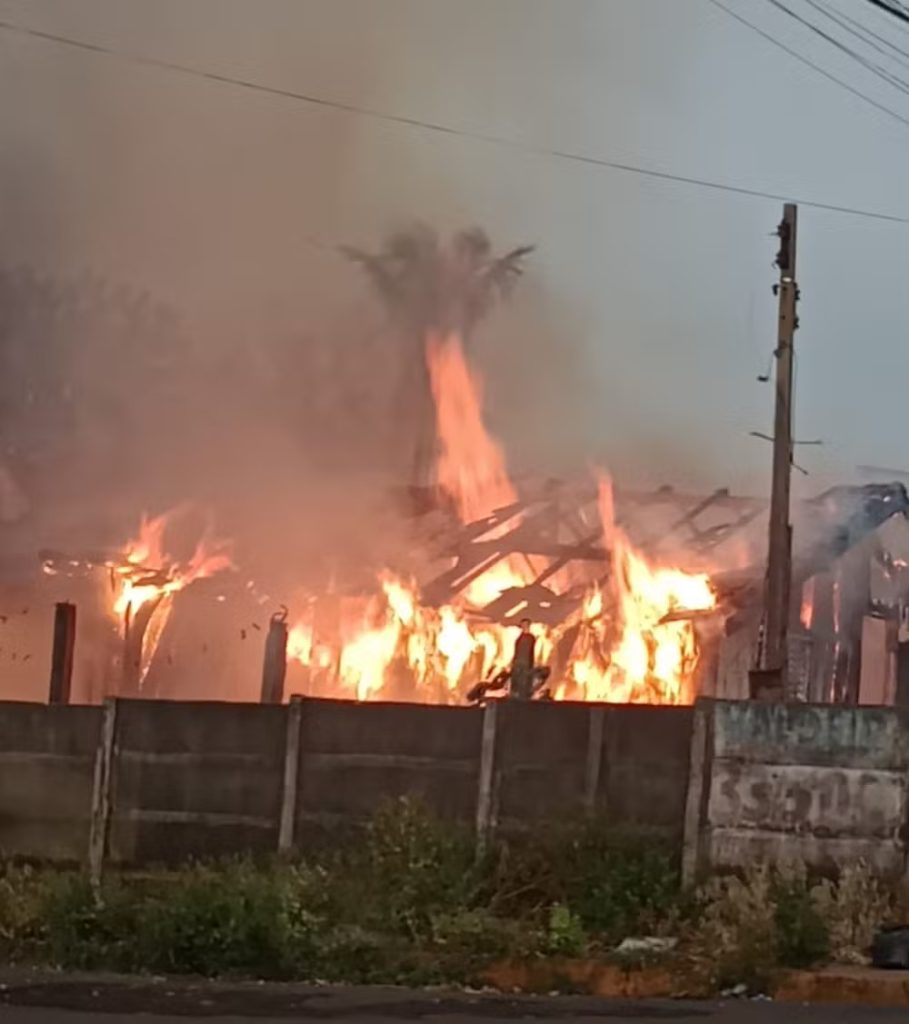 Um incêndio destruiu uma casa de madeira, na manhã deste sábado (13), em Parapuã.