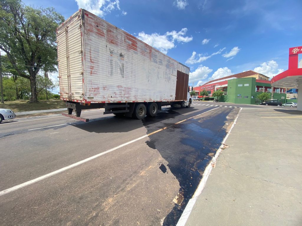 Nossa reportagem falou com o condutor do caminhão que disse que aparentemente, um parafuso que se soltou do tanque de óleo diesel, teria ocasionado o vazamento.