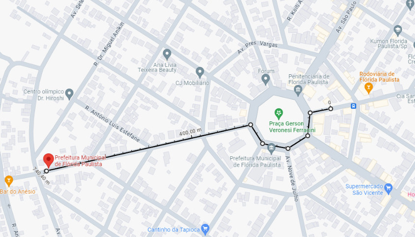 O trajeto feito pelo veículo, sai do almoxarifado, segue até a igreja Nossa Senhora Aparecida, passa em frente à Prefeitura, Secretaria de Educação, local em que houve um grande derramamento de óleo.