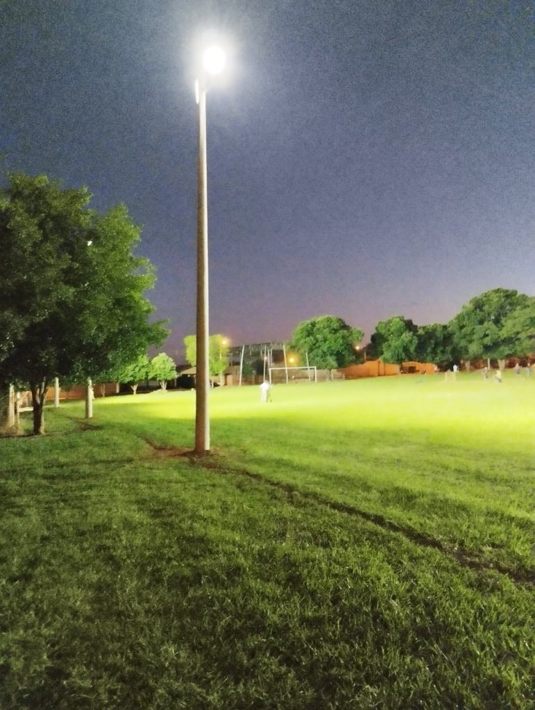Na semana passada, a empresa contratada iniciou a implantação da iluminação no campo de futebol, com a instalação dos postes e início do preparo dos demais componentes necessários para as luminárias. E esta semana, o serviço já ficou praticamente pronto, sendo feito inclusive testes.