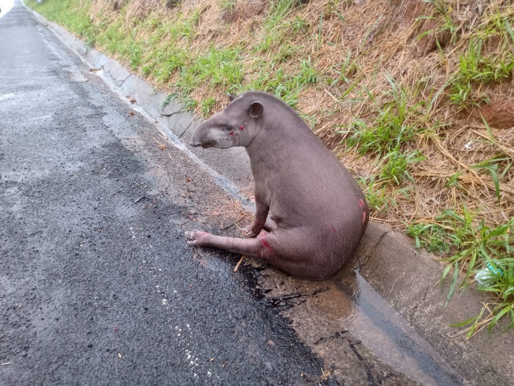 No local foi constatada a existência de um animal silvestre da espécie Anta, que estava às margens da estrada com ferimentos e sem condições de locomoção.