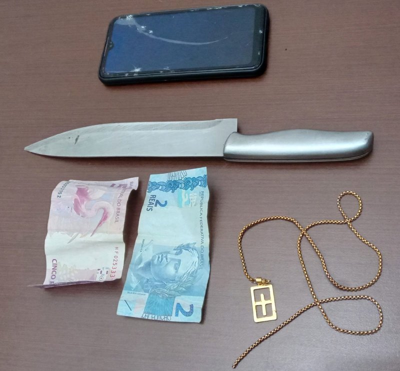 Os policiais militares informaram que foram solicitados pelo encarregado de uma empresa que informou que a vítima estava dormindo no interior do caminhão no pátio da empresa, aguardando para descarregar, quando foi surpreendido pela acusada que já havia adentrado no veículo e, de posse de uma faca, exigiu dinheiro e, após o motorista dizer que tinha apenas R$ 15,00, mandou que o mesmo fizesse PIX. Ainda de acordo com os PMs, foi informado que o caminhoneiro se recusou a fazer o PIX e a mulher desferiu um golpe em sua perna com a faca, subtraiu a quantia de R$ 65,00 e fugiu em seguida.