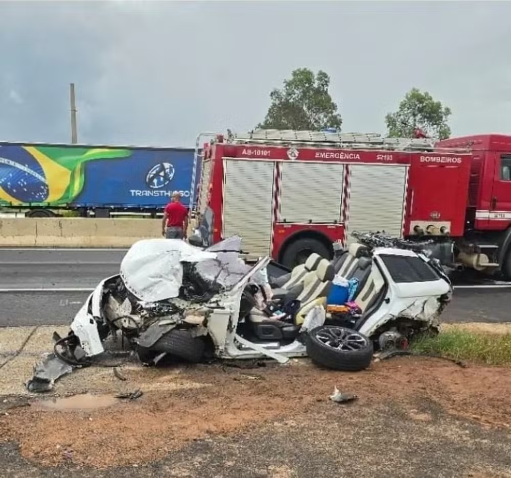 De acordo com informações da Polícia Rodoviária, o acidente foi registrado na altura do km 317. O veículo, considerado de luxo, bateu na defensa metálica após o motorista perder o controle da direção. Na sequência, o carro capotou e foi atingido por uma carreta que trafegava pela via. Chovia no momento do acidente.