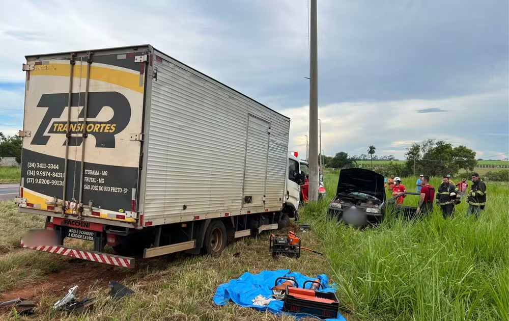 Um idoso, de 77 anos, e a neta dele, de 25, morreram após um caminhão atingir a lateral do carro que ele dirigia em Nova Granada (SP). O acidente ocorreu no quilômetro 31 da Rodovia Transbrasiliana (BR-153).