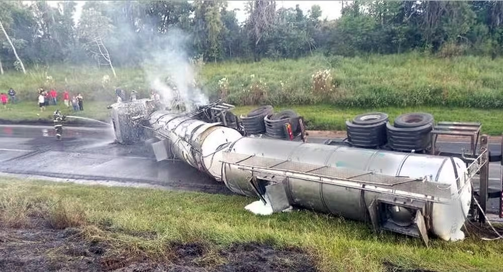 Um caminhão-tanque tombou e atingiu um carro provocando uma morte em Itaberá (SP). O acidente ocorreu no início da noite deste sábado (24), na Rodovia Francisco Alves Negrão.