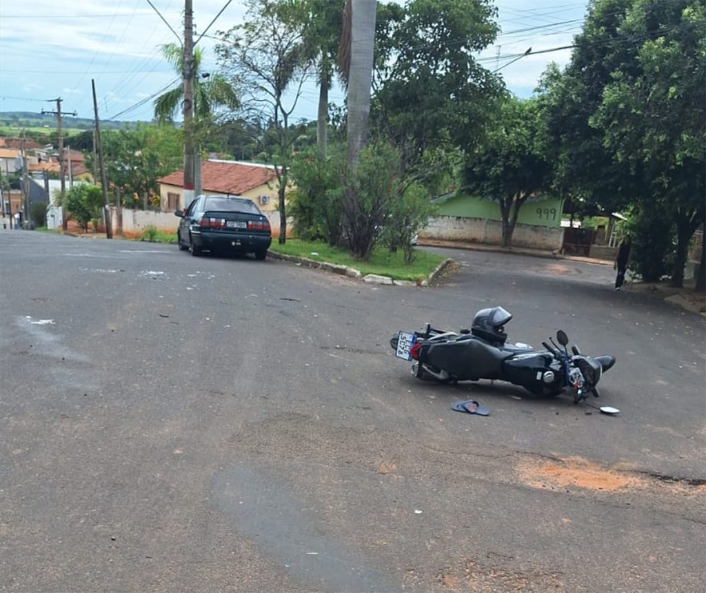Um acidente envolvendo um carro e uma moto deixou um homem ferido na tarde desta terça-feira (16), no centro de Flórida Paulista.
