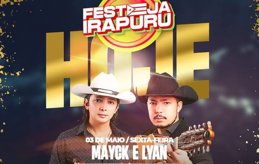 De acordo com a programação o “Festeja Irapuru” será realizado no período de 3 a 5 de maio com os seguintes shows: