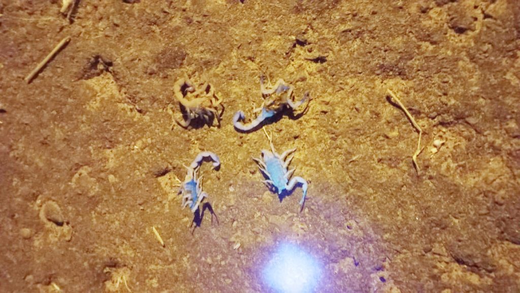 Conforme professor Rafael, a pedido de uma moradora que tem uma criança de colo, ele esteve na residência que é vizinha do Cemitério Municipal e com o auxílio de uma lanterna específica para identificar escorpiões, localizou inúmeros deles pelo muro e calçada que fica na rua Pernambuco.