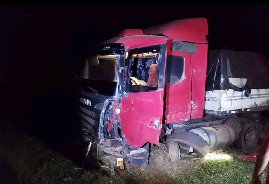 Conforme a Polícia Rodoviária, uma equipe foi acionada para atender um acidente de trânsito. Os policiais constataram que uma carreta bitrem transitava na via e colidiu lateralmente contra um caminhão, que transitava no sentido contrário.