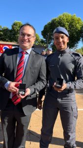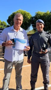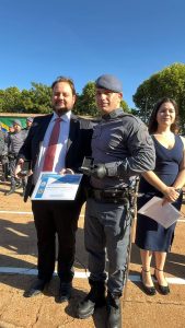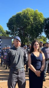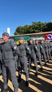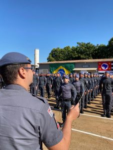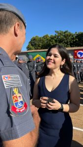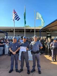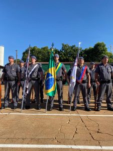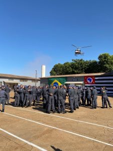Para finalizar, o helicóptero Águia da Polícia Militar sobrevoou o pátio da escola, acrescentando um toque especial à comemoração e destacando ainda mais a importância desse momento para os novos soldados.