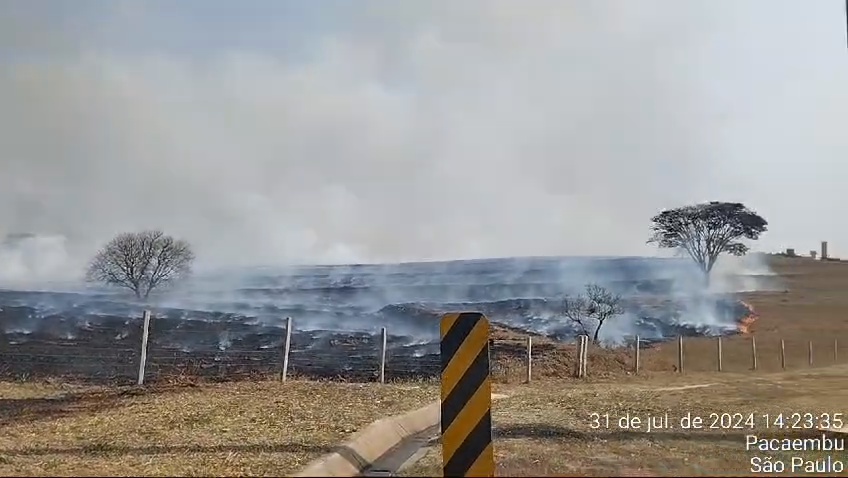 Ainda segundo a corporação, o fogo danificou totalmente a carga de feno, parte do veículo, com placas de Irapuru, e a área de pastagem, até ser controlado.