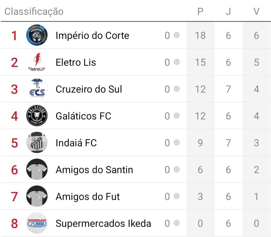 Desta maneira a equipe Império do Corte garantiu sua vaga nas semifinais do campeonato e precisa de um empate na última rodada para ficar na 1ª colocação geral, já o Cruzeiro do Sul encerrou sua participação no campeonato, a equipe já possuem vaga nas quartas de finais, mas podem perder uma posição na tabela caso o Galáticos F.C. pontuem na última rodada.