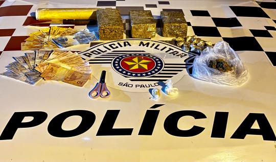 Na residência os policiais localizaram entorpecentes e dinheiro que ele conseguiu no tráfico, além de materiais utilizados para embalar as drogas.