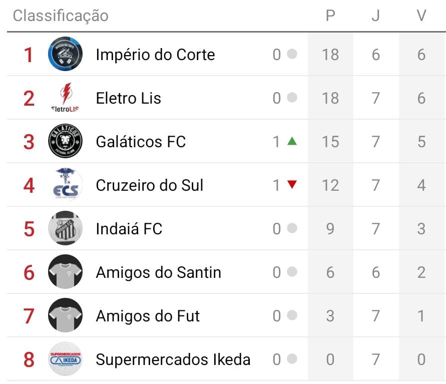 Por conta do último jogo a ser disputado ainda pode haver mudanças na tabela, caso o Império do Corte/Chicão Frutas perca por 3 gols de diferença eles perdem a 1ª posição do campeonato, enquanto Amigos do Fut se vencer pelo mesmo 3 gols de diferença vão para a 5ª posição, havendo mudanças nas disputas das quartas de finais que continuam programadas para o próximo domingo (25).