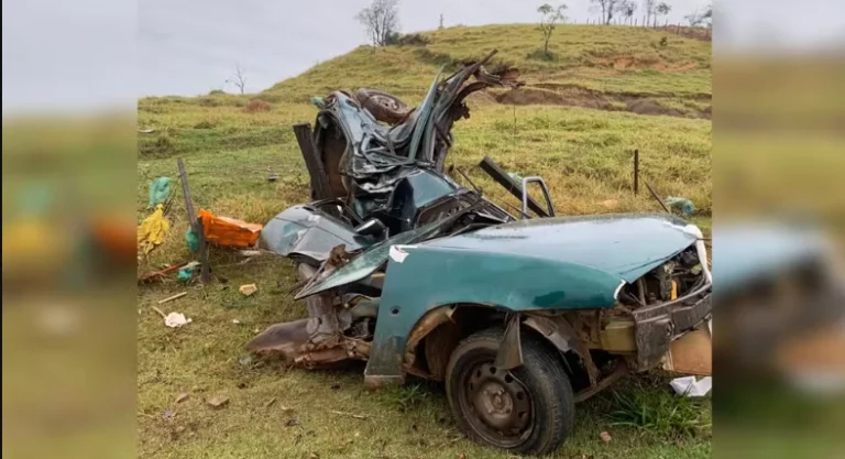 Com o impacto, o motorista foi arremessado para fora do veículo, que ficou completamente destruído. Apesar dos estragos, o homem teve apenas ferimentos em um dos braços.