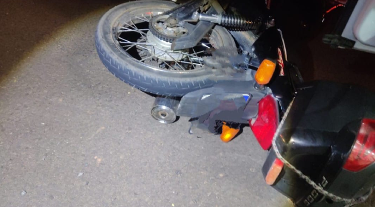 Carro e moto seguiam pela mesma faixa de rolamento, quando houve a colisão entre ambos.