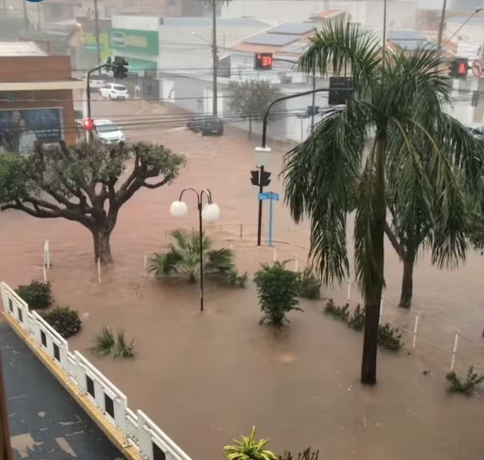 De acordo com a Coordenadoria Municipal de Proteção e Defesa Civil, a cidade registrou 38 milímetros de chuvas em menos de meia hora, o que fez com que alguns pontos da cidade enfrentassem alagamentos.
