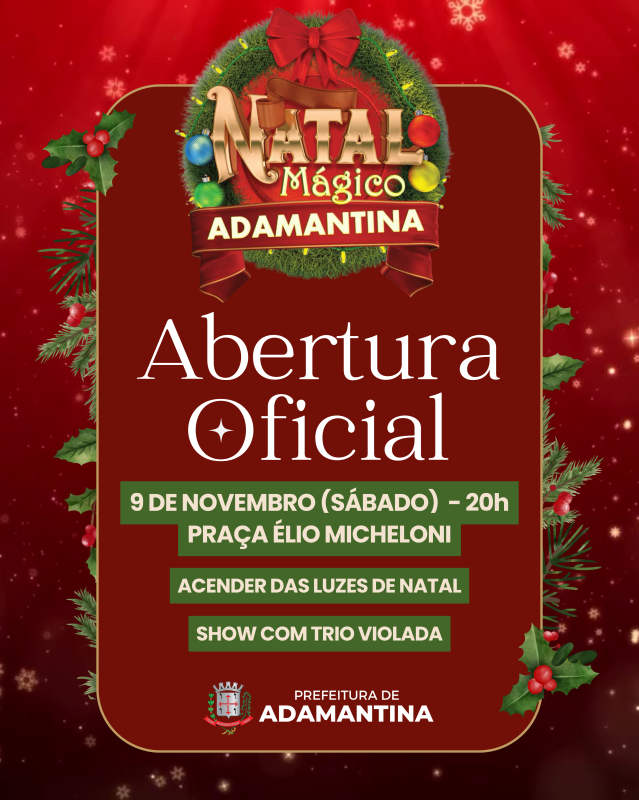 “Mais uma vez esse ano Adamantina sai a frente da região com a abertura oficial do Natal Mágico, com o acender das luzes. Com certeza, o número de visitantes já deve aumentar no mês de novembro gerando mais movimentação principalmente no ramo alimentício”, afirma a secretária de Desenvolvimento Econômico, Luciana Pereira.