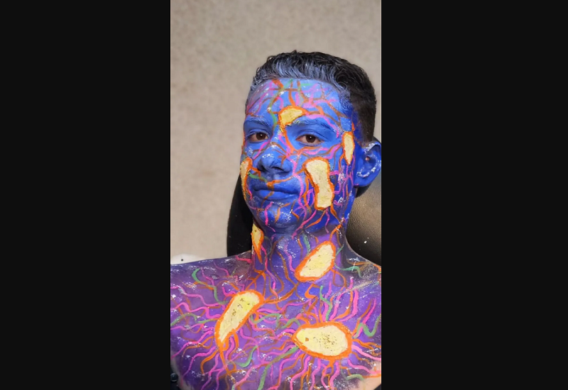 Em 1º lugar, ficaram Gabrielly Borges e Livia Doarte, com a maquiagem “Homeostase”. O tema abordou a busca constante pelo equilíbrio em meio a perturbações, tanto no corpo quanto na vida. As cores frias e quentes representaram essa harmonia entre estabilidade e transformação, enquanto os estímulos visuais simbolizaram o papel do sistema nervoso em detectar e responder a desequilíbrios. A maquiagem foi uma homenagem à resiliência e à capacidade humana de se adaptar, evocando a fragilidade e a força inerentes à vida. A criação convida o público a refletir sobre a beleza complexa de estar vivo e a importância de encontrar equilíbrio, mesmo diante do inesperado.