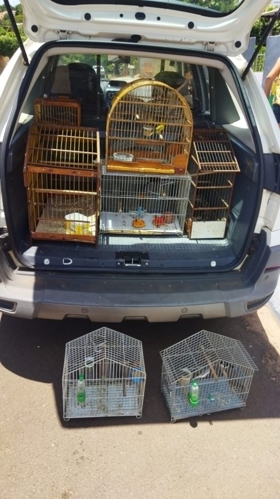 Ao chegarem ao local, os policiais constaram que o envolvido mantinha 12 aves da fauna silvestre em cativeiro, sendo dois canários-da-terra, dois melros, um sabiá-laranjeira, cinco coleirinhos, um pássaro-preto e um tico-tico-rei.