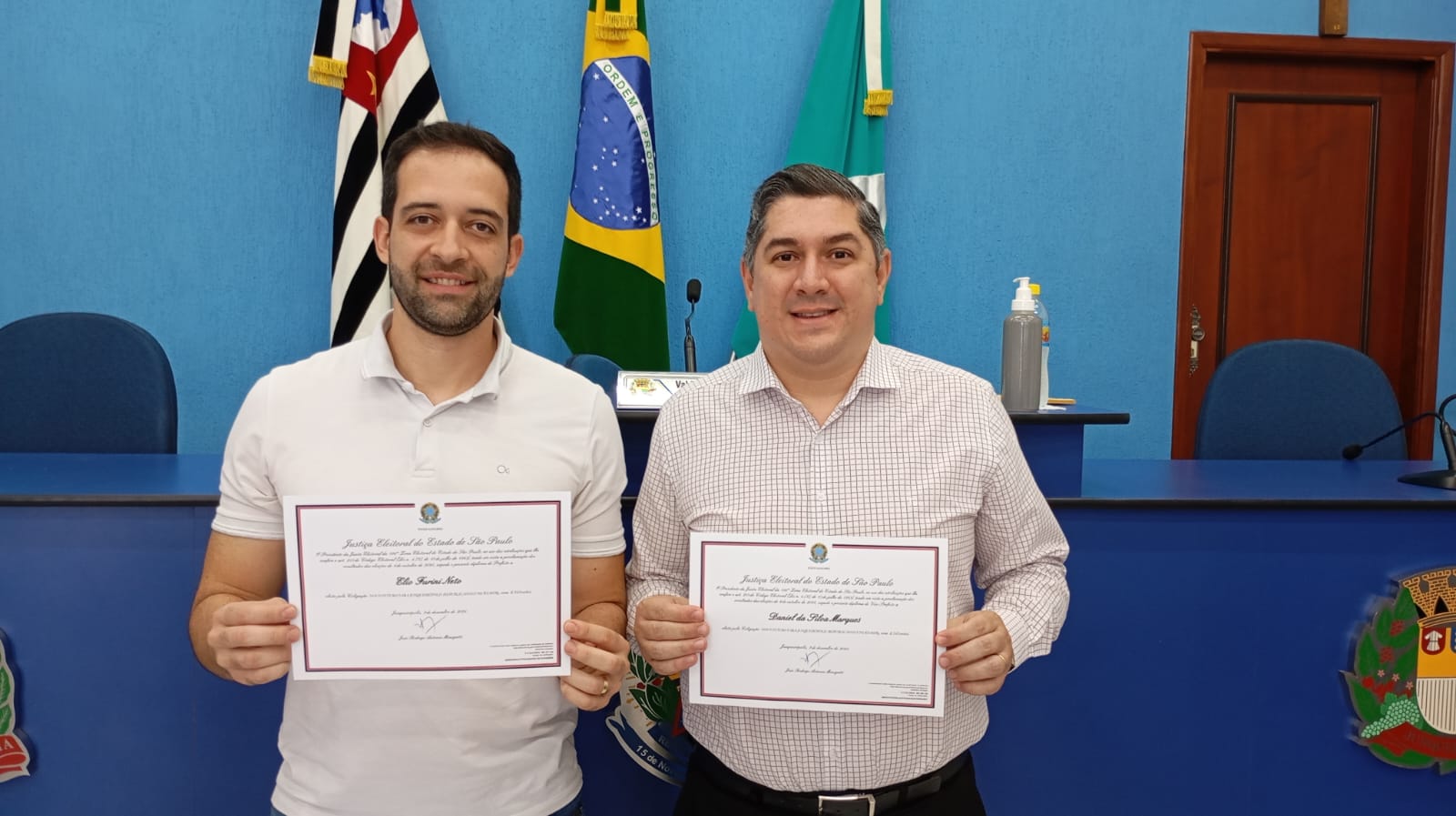 Durante a cerimônia, receberam seus diplomas o prefeito eleito Élio Furini Neto e o vice-prefeito eleito Daniel da Silva Marques, ambos representantes da coligação Novo Futuro para Junqueirópolis (Republicanos/União/MDB), com 6.545 votos.