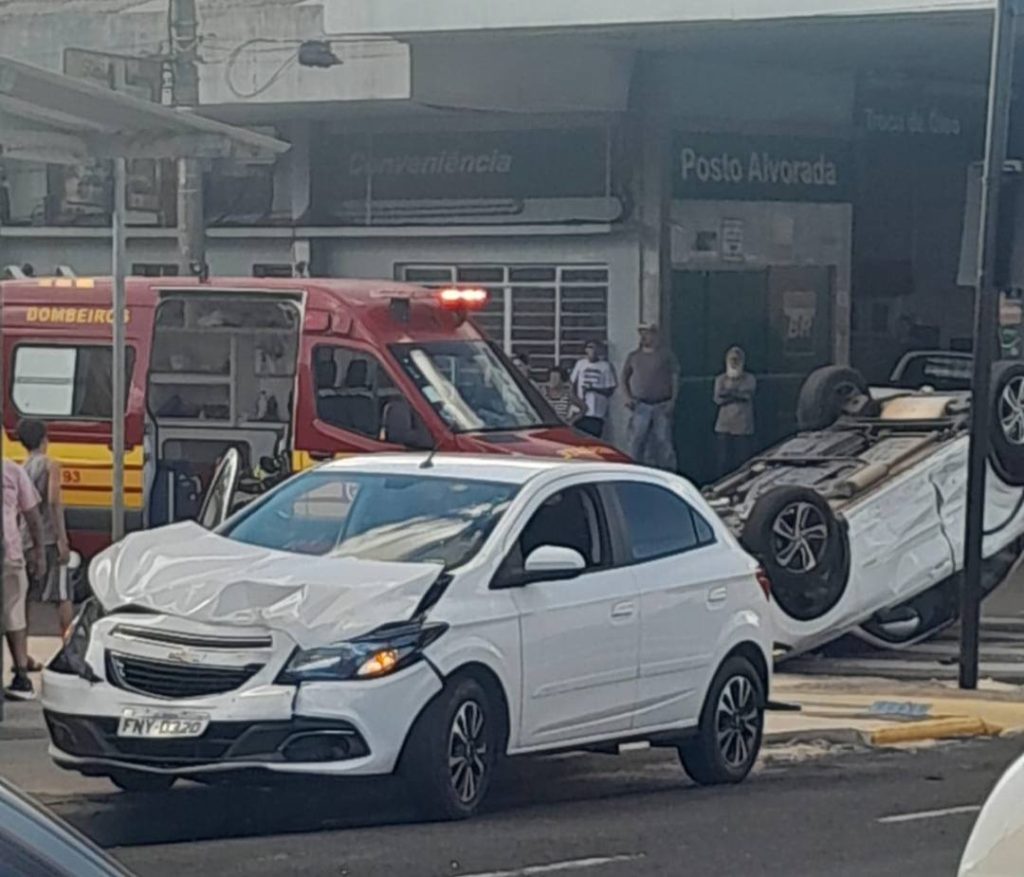O acidente ocorreu próximo à igreja católica central da cidade e resultou no capotamento de um dos automóveis.