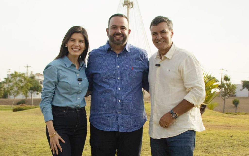Na foto o vereador Renato Vieira com os deputados Capitão Augusto (federal) e Dani Alonso (estadual) ambos do Partido Liberal, em recente visita a Junqueirópolis.
