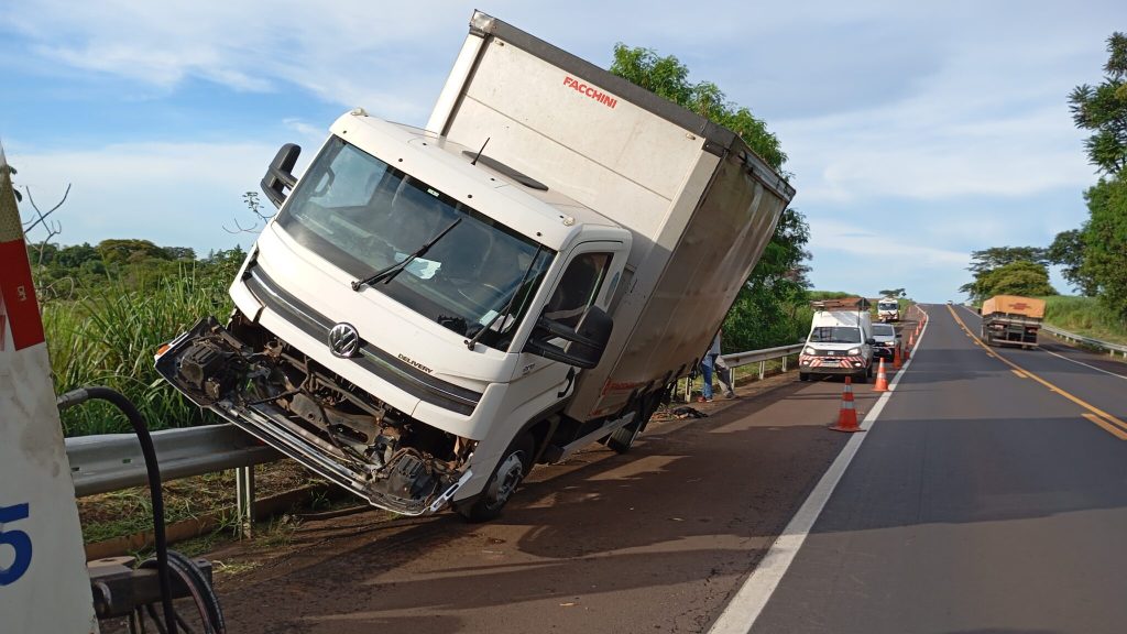 Na tarde desta sexta-feira (14), um acidente de trânsito sem vítimas foi registrado no km 288 da Rodovia Assis Chateaubriand. De acordo com informações, um caminhão-baú que transportava galões de água seguia no sentido Martinópolis-Rinópolis quando, por razões ainda desconhecidas, o motorista perdeu o controle da direção.
