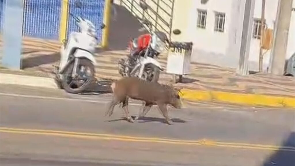 A cena inusitada de um porco “passeando” livremente na manhã deste sábado (15) viralizou nas redes sociais e em aplicativos de mensagens em Lucélia.